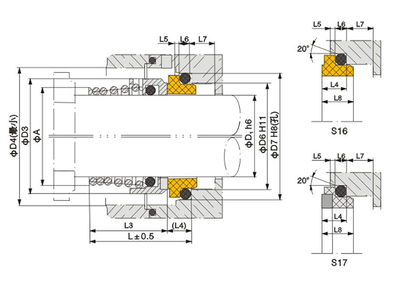 Single face, unbalanced structure and conical spring with one side of spring is locked on the shaft, moving same direction .Simple structure, good performance and reliable seal.